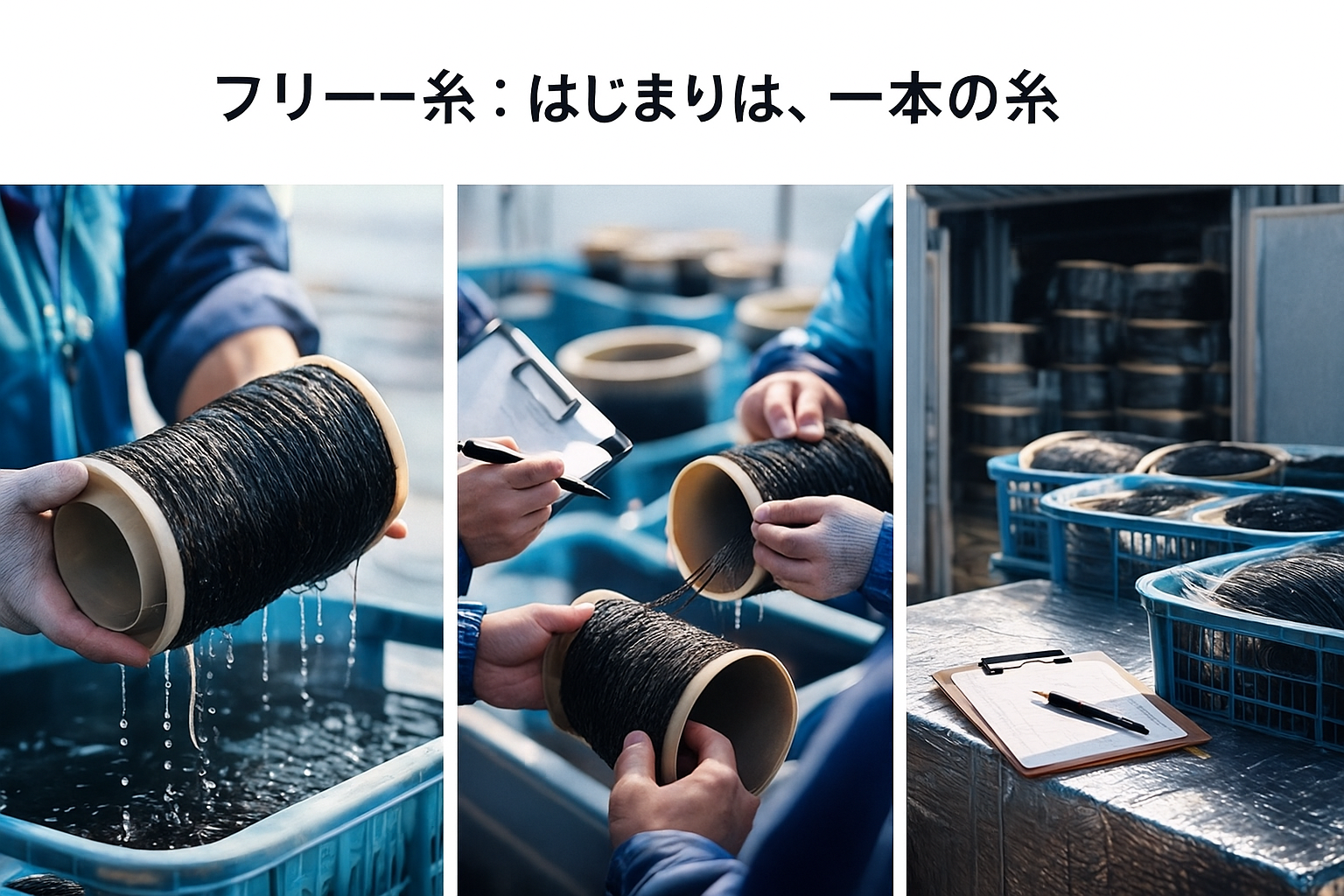 海苔養殖フリー糸は、海苔養殖のスタート地点。受け取った瞬間から品質づくりが始まります。この記事では、フリー糸とは何か、受け取り時に確認したいポイント、保管・取り扱いで気をつける考え方をまとめます。目に見える変化が少ない段階だからこそ、段取りと記録が効くところ。後の芽出しや伸びの揃い方に影響する「最初の準備」を、作業状況と育成状況に分けて解説します。